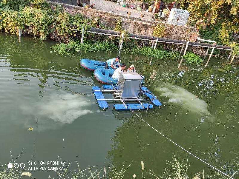江西萍鄉(xiāng)3臺(tái)太陽(yáng)能推流曝氣機(jī)安裝現(xiàn)場(chǎng)